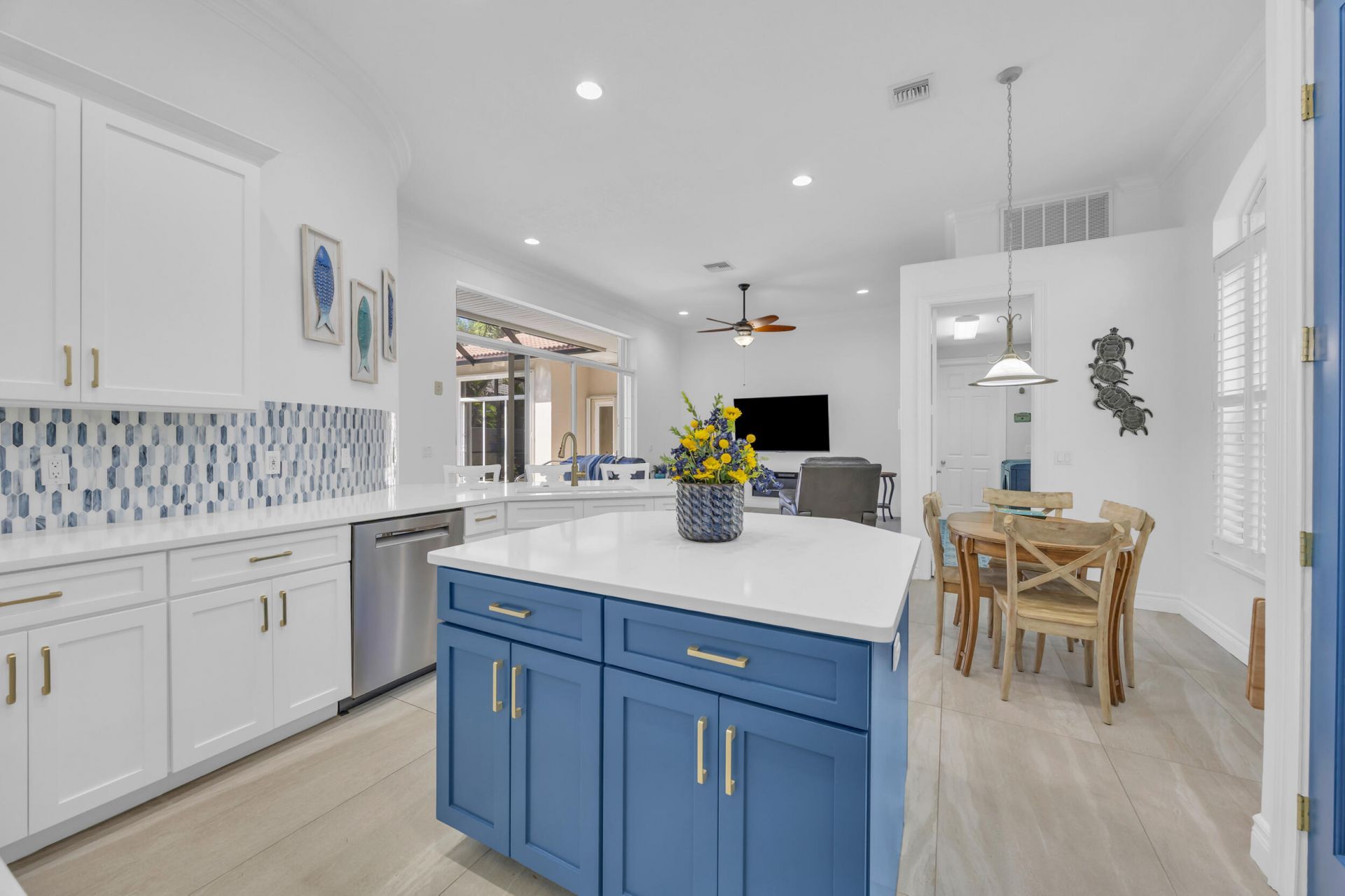 Impeccable 4-bedroom, 4-bath courtyard pool residence featuring a private casita with your own kitchenette. This home showcases a fully renovated kitchen with quartz countertops, updated bathrooms and seamless tile flooring throughout. Step into your own private oasis with a screened courtyard to enjoy your pool and a separate screened patio designed for effortless indoor-outdoor living.