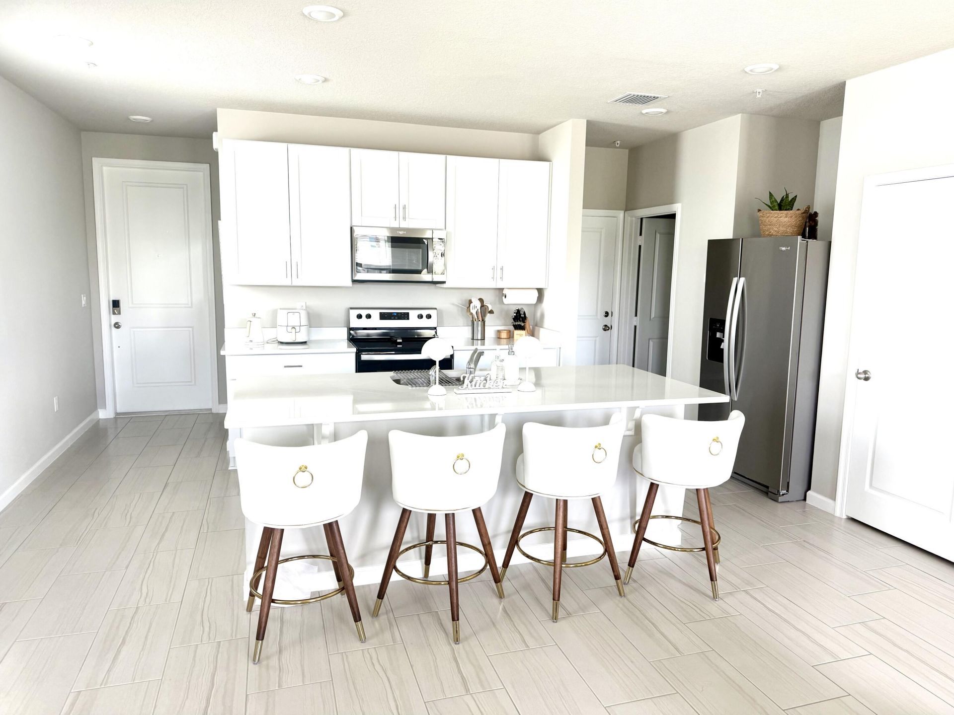 2025 FURNISHED Townhouse-SHORT- OR LONG- TERM LEASE Available! Spacious, 1800 sq. ft., Energy-Efficient, Impact-Glass. Gated Community. Very Neat, Light & Bright Corner Unit. Utilities included are trash, recycle, water, sewer & cable. Man-made lake as your view. Washer and dryer in the unit. 2 car garage. Split bedroom plan with 3 bedrooms & 2 full bathrooms upstairs, and 1/2-bath downstairs. Tasteful and impeccable furnishings! Turn-key accommodations! All you need to do is unpack your bags! Pool. Close to the beach, shops, highways. A great home away from home while you're working or searching for your new home. A real gem, a must see to appreciate. Annual lease is preferred but not mandatory. Owner occupied please call for showing appointment.