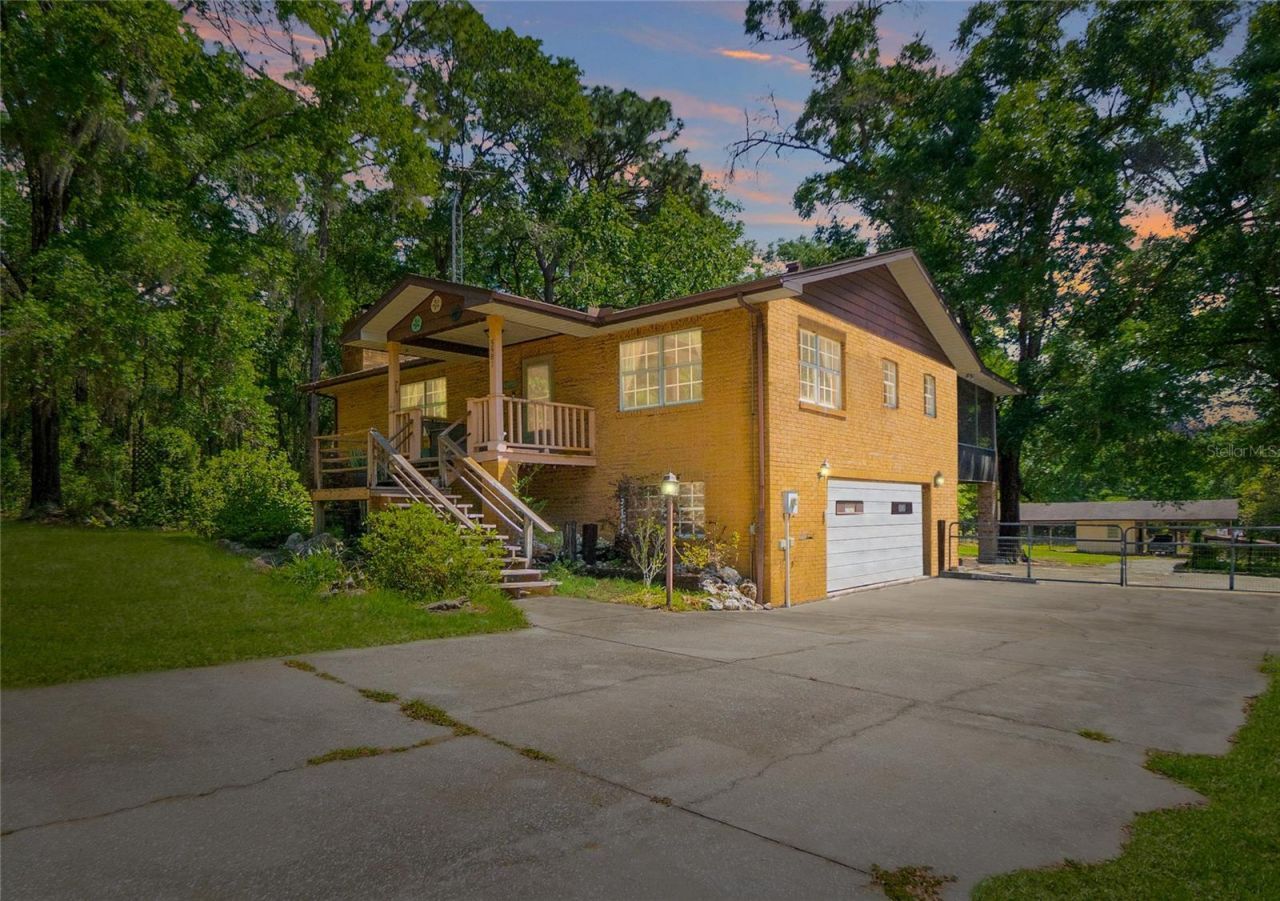 Tucked away on a generous .95-acre parcel, this custom-built 1981 residence offers a blend of space, flexibility, and character-perfectly suited for multigenerational living or those seeking room to grow. With 1,953 square feet of living area, 3 bedrooms, 2 bathrooms, and a side-entry 2-car garage, this property delivers both comfort and functionality in a peaceful setting. The upper level serves as the main living space, featuring a full kitchen equipped with wood cabinetry, stainless steel appliances, and a convenient breakfast bar. The adjoining dining area flows seamlessly into a spacious living room anchored by an expansive stone fireplace, creating a welcoming focal point. Two bedrooms and a full bathroom complete this level, along with an inviting 11x12 screened lanai-ideal for enjoying the outdoors year-round. The lower level provides additional versatility with a private entrance, making it well-suited for extended family or guests. This space includes a flex room highlighted by a second wood-burning fireplace, an additional bedroom, and a full bathroom. Laundry hookups are conveniently located on both levels, enhancing everyday ease. A spiral staircase connects the two floors, adding architectural interest. Outdoors, the property presents a new rood in 2025, a rear fenced yard, a detached workshop with an attached pole barn, and a chicken coop for those seeking a touch of country living. With ample room for gardening, recreation, or the addition of a pool, the possibilities are endless. This unique property combines privacy, practicality, and rustic charm-ready to accommodate a variety of lifestyles.