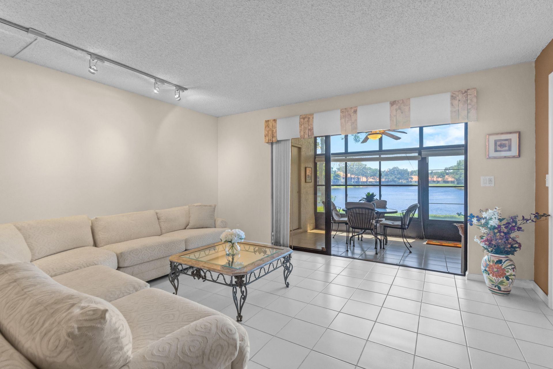 Beautifully maintained 1st floor 2BR/2BA + Den in desirable 55+ Sun Valley East, featuring spacious 1,644 sf living space, eat-in kitchen, separate dining area, den alcove and inviting living room that opens to an enclosed south-facing patio with stunning full lake views-an ideal setting for fishing, relaxing and entertaining. Opportunity to expand outdoor patio by 200 sf. Primary suite offers water views, walk-in closet and en-suite bath. Versatile den with a full-length closet provides additional storage and flexibility for home office or guest space. Second bedroom with custom built-ins for added functionality. Enjoy resort-style living with a clubhouse, pool, fitness center, tennis, pickleball, bocce ball and full calendar of social and club activities. HOA includes roof maintenance, landscaping, pest control, water, and cable offering convenience and peace of mind. Ideally located near shopping, dining, and pristine beaches-this is Florida living at its best!